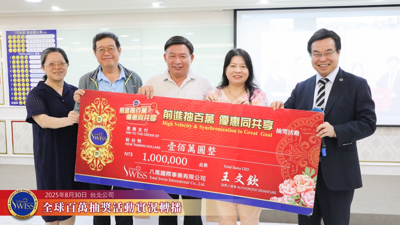 토탈스위스 제44회 글로벌 백만 추첨 행사가 2025년 8월 30일 타이베이 본사 7층 현장에서 진행되었습니다.